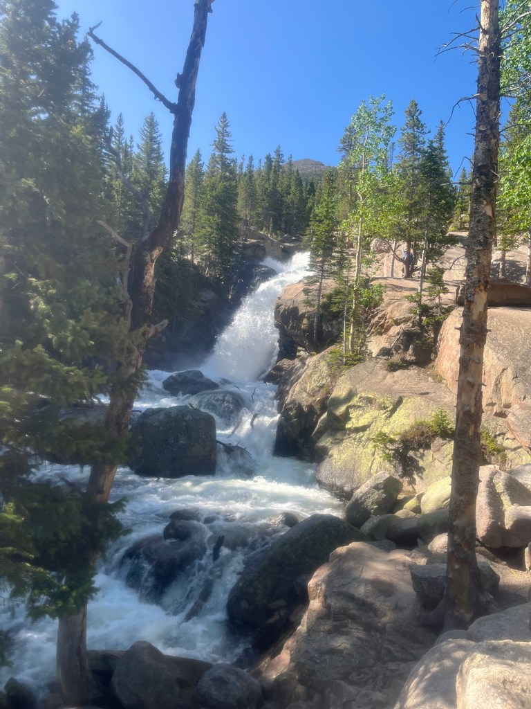 Drove over to Sprague Lake to start my hike to Sky Pond. Filled up some water, packed some lunch and snacks, then gave my mother a call to check-in and let her know I have yet to starve to death or get mauled by a bear.