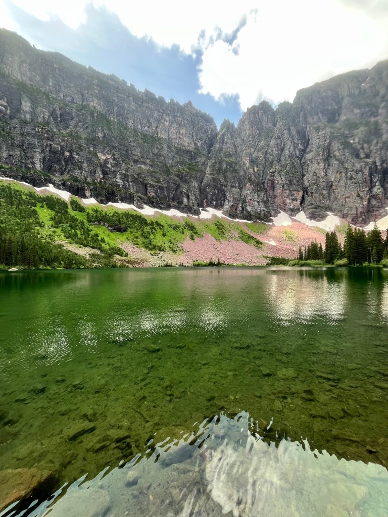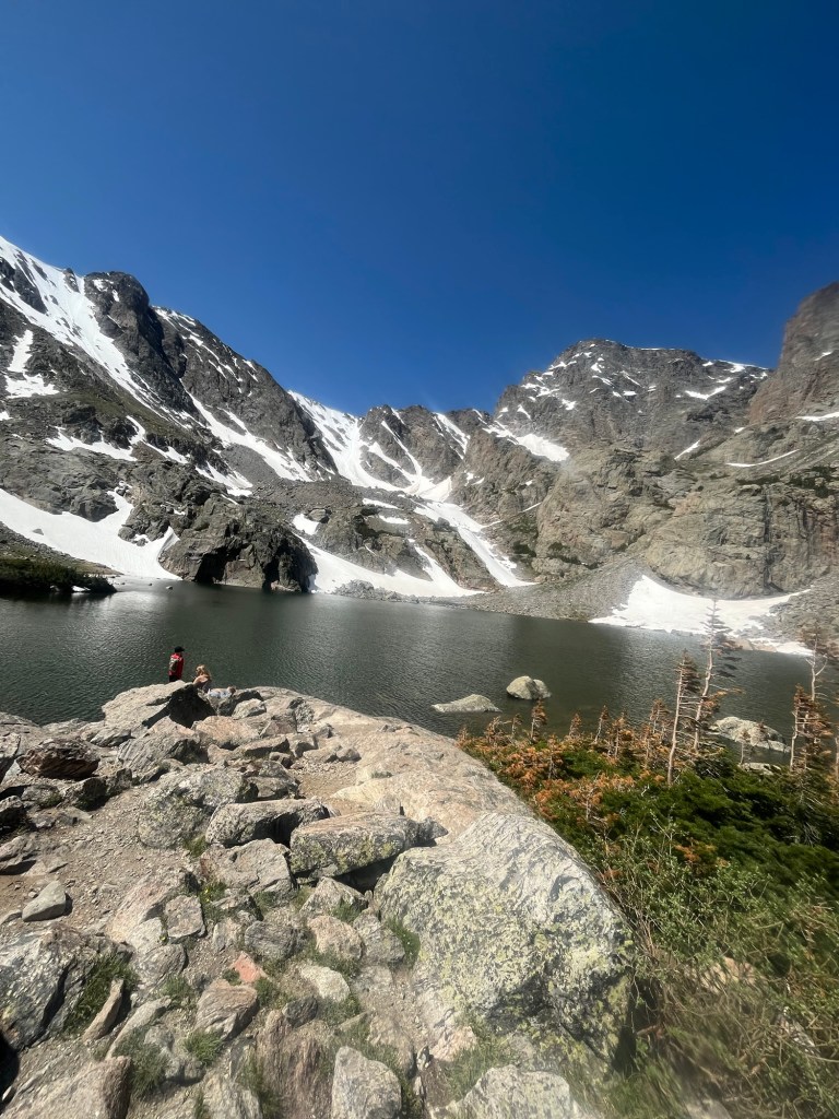 The trail continued to climb and the switchbacks were abundant. The crowds had thinned, and snow drifts started to appear on the sides of the trails. I felt close. Especially when I made it to The Loch, which was a large Alpine lake. I expected to finish at any moment as my mileage was near the halfway point, but the trail continued and I obediently followed.
