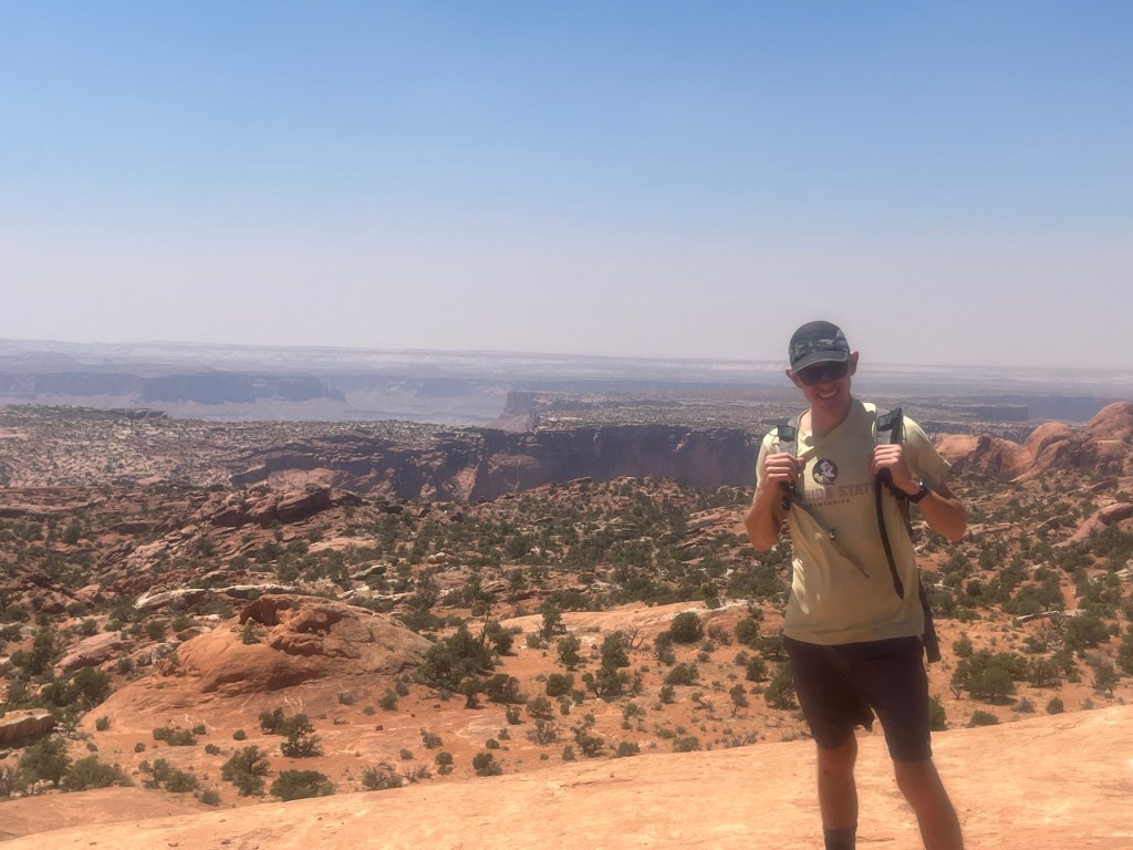 While I was driving back, I received a call from a Utah number. Because I am actually in Utah, I answered. It was “Terry”, the owner/manager of the campground I am staying at. Apparently, he had found my tent on top of the roof of the bath house. It was blown there by the strong winds I had experienced in the park. By this point he had already returned it to the ground and only found one small hole in the bottom. Frustrated with myself for not properly staking it down, I thanked Terry and continued my tearful drive back to camp.
