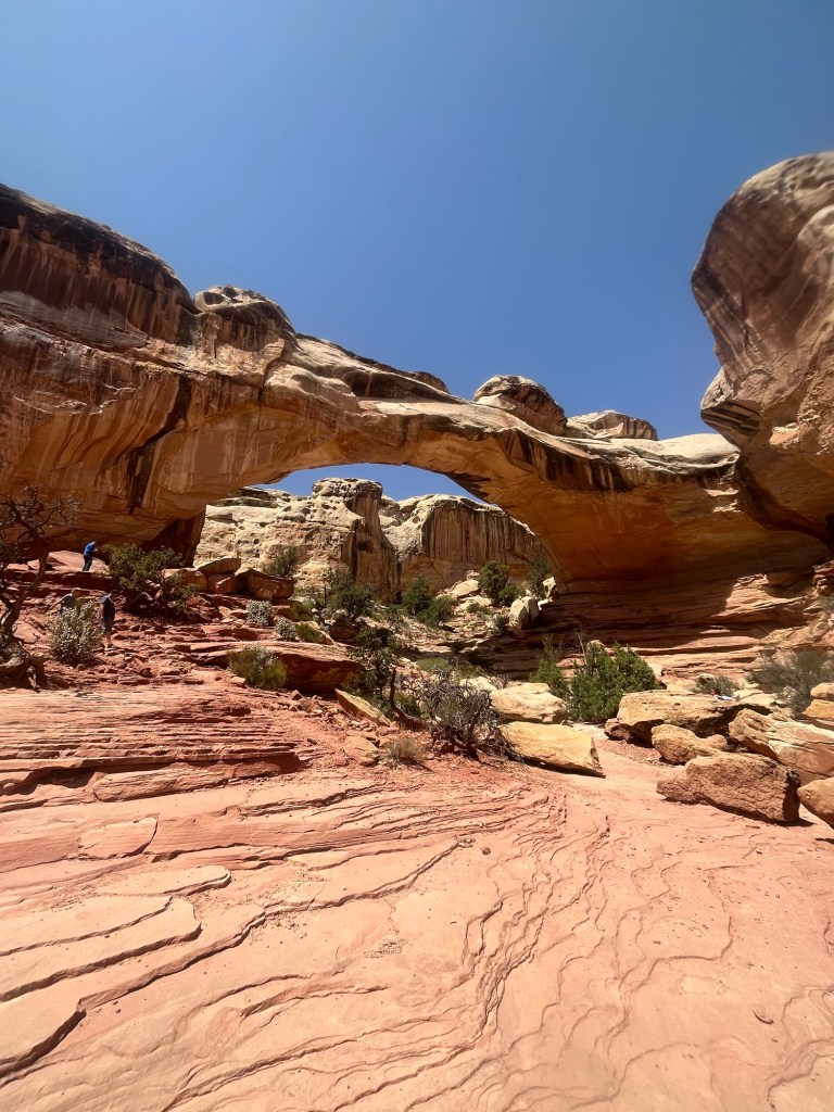 But, was not to last. New hikers showed up, and headed straight down to the arch, as if they were the first to ever have the idea. Slowly other followed and a crowd formed beneath it. I stayed until the light was almost to the bottom of Delicate Arch, then headed back down the trail, smiling at how lucky I was to start my day in such a magical place.