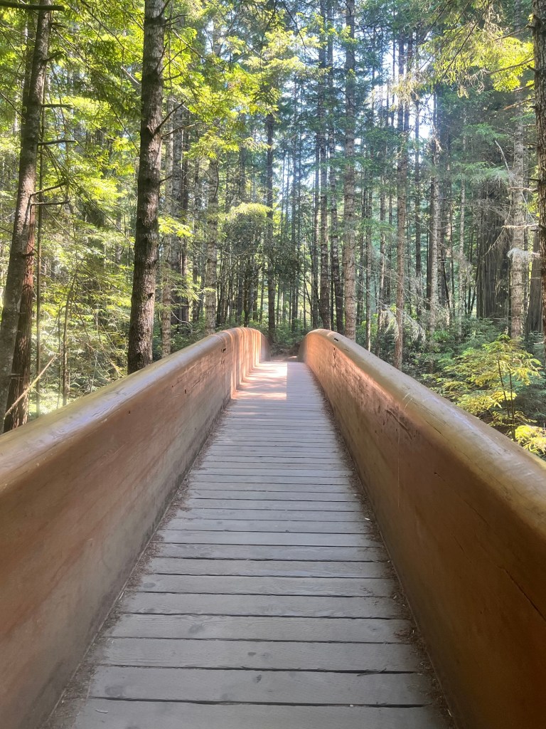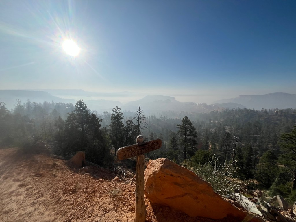 We get a brief reprieve after a couple miles with a stretch of tree cover as we round the mountain pass. There is a wooden bridge Carter remembers as a marker for being near the summit. The GPS has us at 3 miles, so it seems a little early, but we’re both excited to be close to the top.