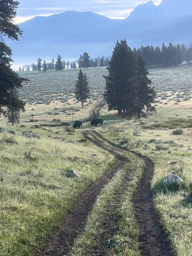 As I was driving away from the campground I saw a couple Elk grazing and slowed down to admire them and take a picture. As I was pulling away I noticed a couple other animals and slowed down again to see them. And they were young moose! I was so excited to see my favorite animal for the first time!