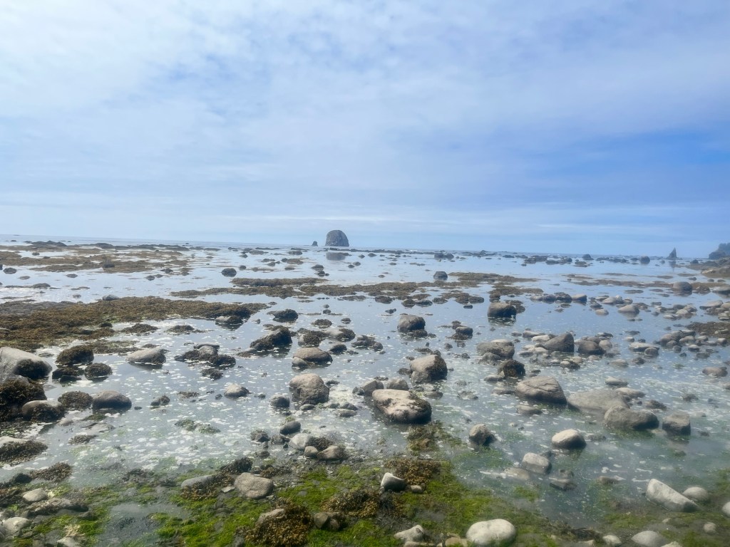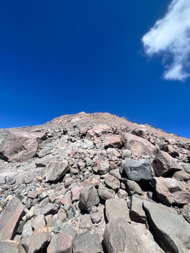 Here’s where the hike really began. Still fresh, and aided by gravity, I scrambled down, navigating the trail with all four limbs as the terrain required. About halfway down, I saw a group of four other hikers who were headed up. I encouraged them that the end was near, and kept following the cairns (small rocks piled on each other, that serve as trail markers) down to the bottom.