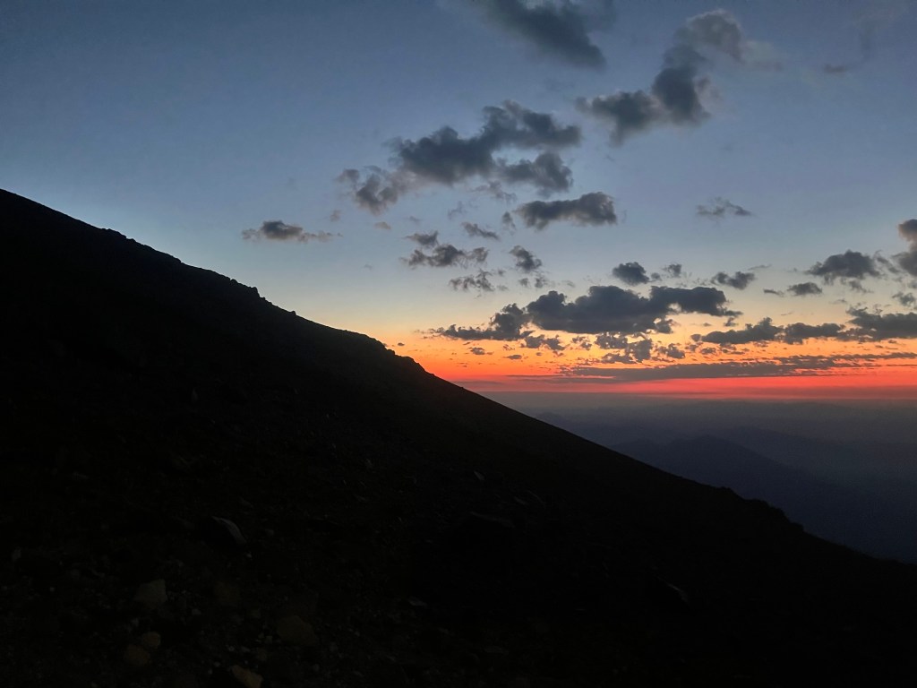 I made it to the parking lot at 5:30am. With 25 minutes to go I bounded up the trail reeling in a handful of hikers who had started before me. My racing instincts never turn off.