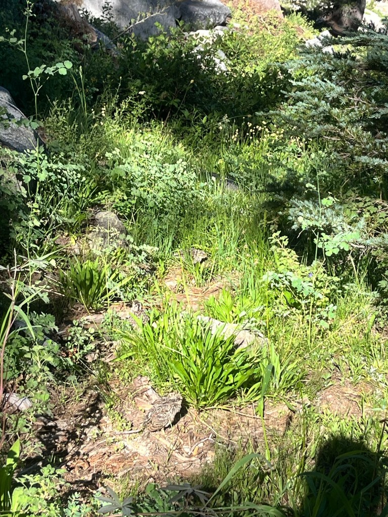 We briefly stop to confirm that the other heard and saw the same thing and conclude that it was definitely a rattlesnake coiled and potentially ready to strike. I throw a rock in its general direction to see if it’s still there but hear no response. It was likely just as scared as us and slithered away. Hopefully far away.