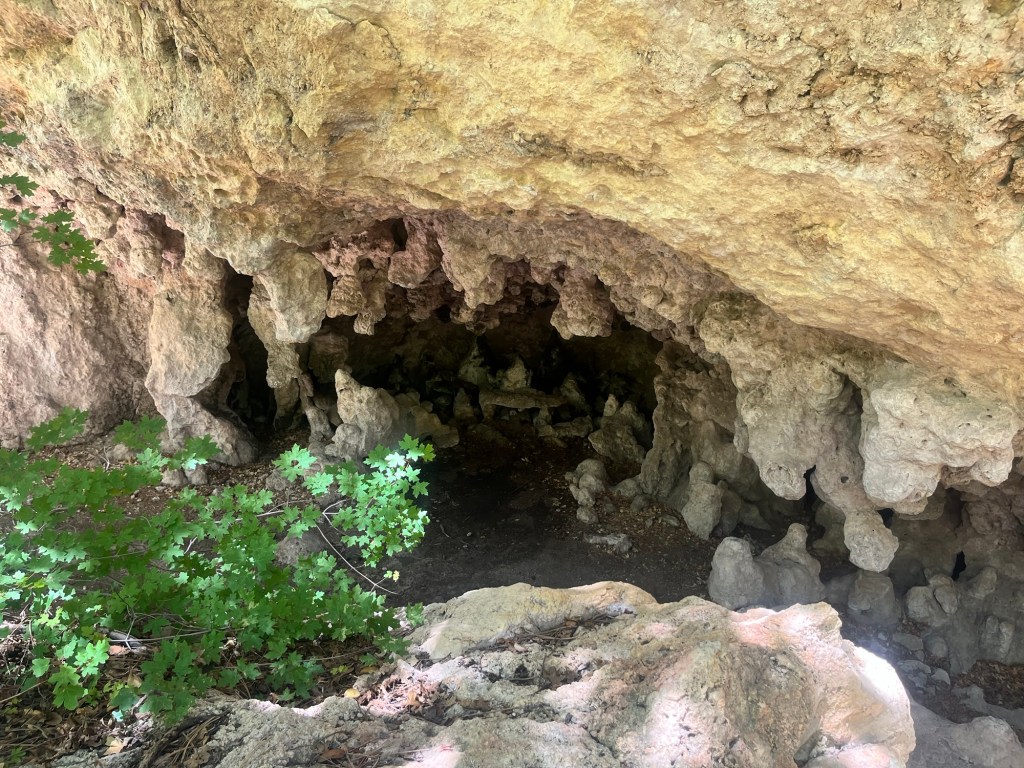 Following lunch we continue hiking out to the grotto and reach it in less than a mile. It’s a cool semi-cave like rock formation with dripping water and stalactites hanging from the roof and dripping water on the stalagmites beneath them.