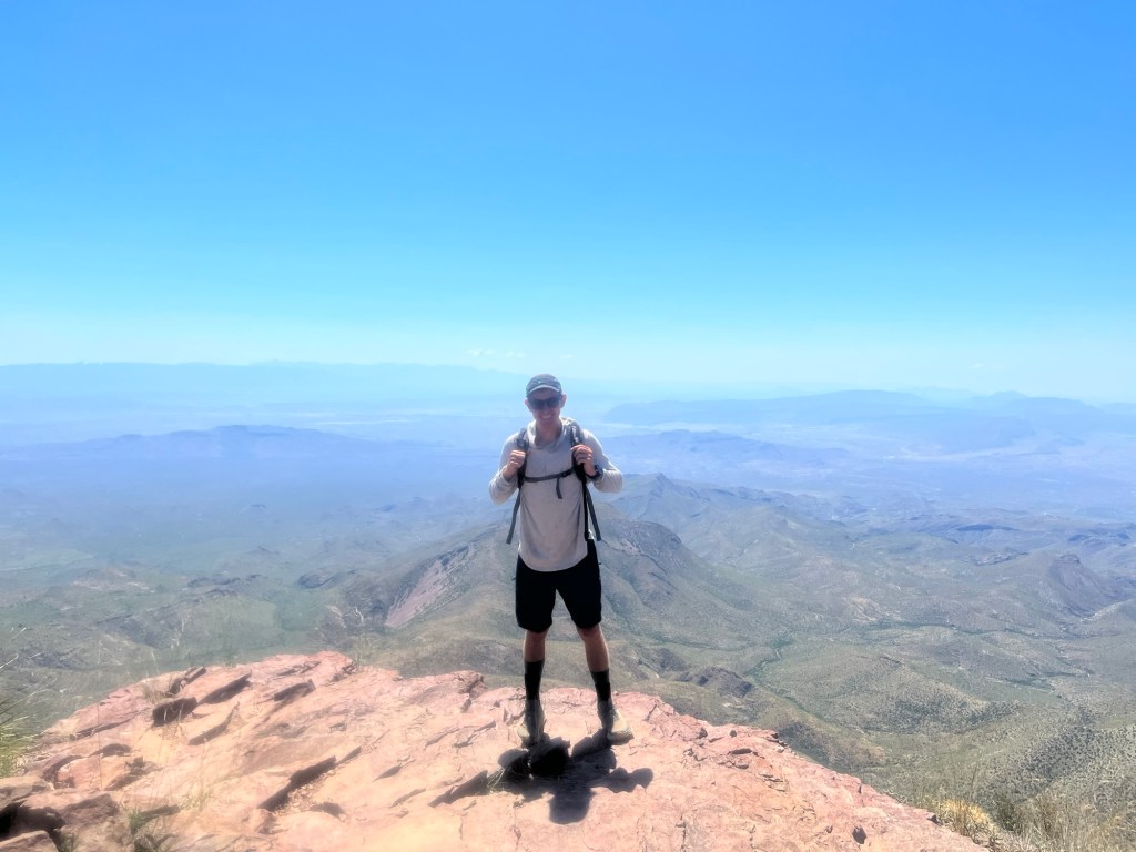 As he drinks some water I can hear some voices above us. I walk down the trail about 15 yards and realize the voices are at the top and it is just around the corner. Carter is right behind me and after a few more steps we congratulate each other for summiting.